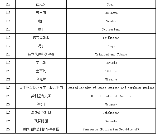 《公约》缔约国名单